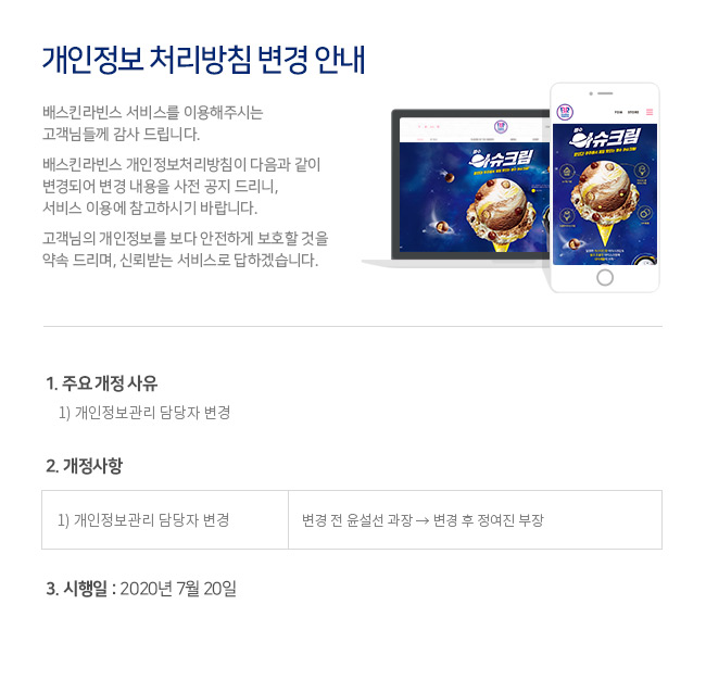 개인정보처리방침 변경 안내