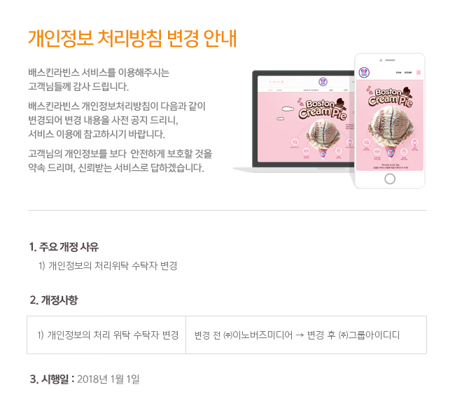 개인정보처리방침 변경 안내