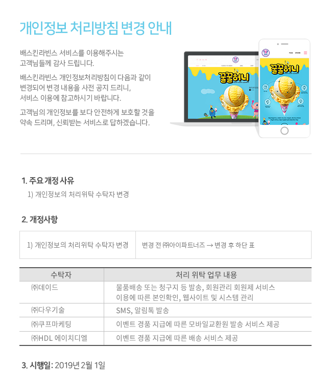개인정보처리방침 변경 안내