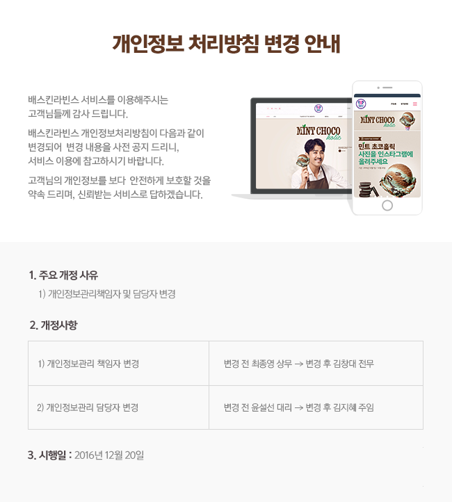 개인정보처리방침 변경 안내