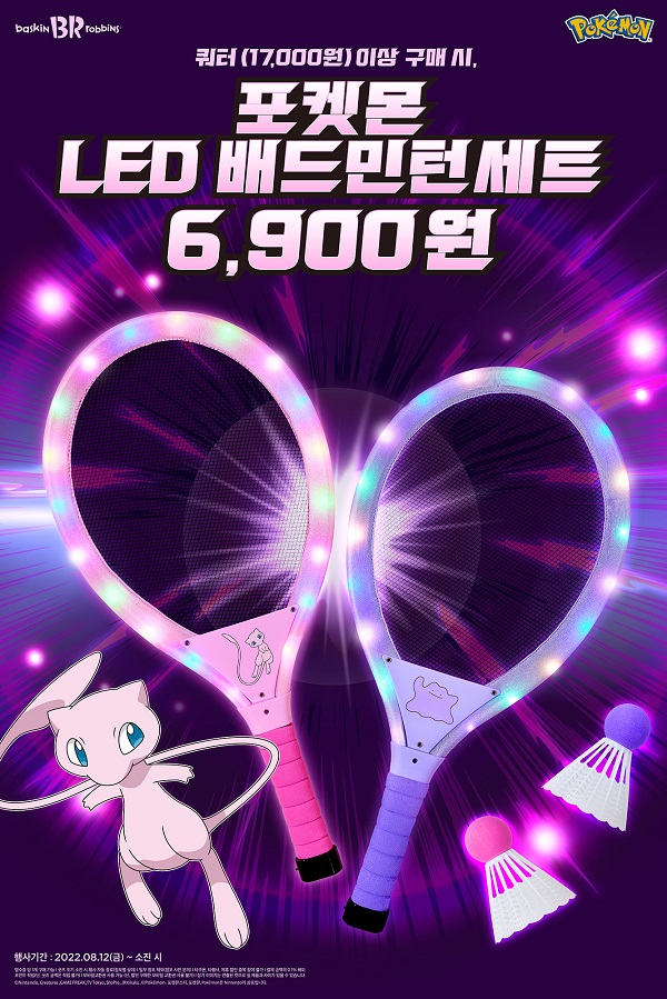 SPC그룹이 운영하는 배스킨라빈스가 글로벌 인기 콘텐츠 포켓몬스터와 손잡고 가족, 연인 등과 함께 즐기기 좋은 ‘포켓몬 LED 배드민턴 세트’를 출시한다고 5일 밝혔다.