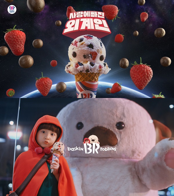 이번 광고는 배스킨라빈스의 시그니처 플레이버 ‘엄마는 외계인’과 스테디셀러 ‘사랑에 빠진 딸기’가 만나 탄생한 이달의 맛 ‘사랑에 빠진 외계인’을 알리기 위해 제작됐다. ‘딸기 소녀’ 역할로는 드라마 ‘신사와 아가씨’, ‘슬기로운 의사 생활’에 출연해 시청자들을 미소 짓게 만든 아역 배우 안태린을 선정했다.
