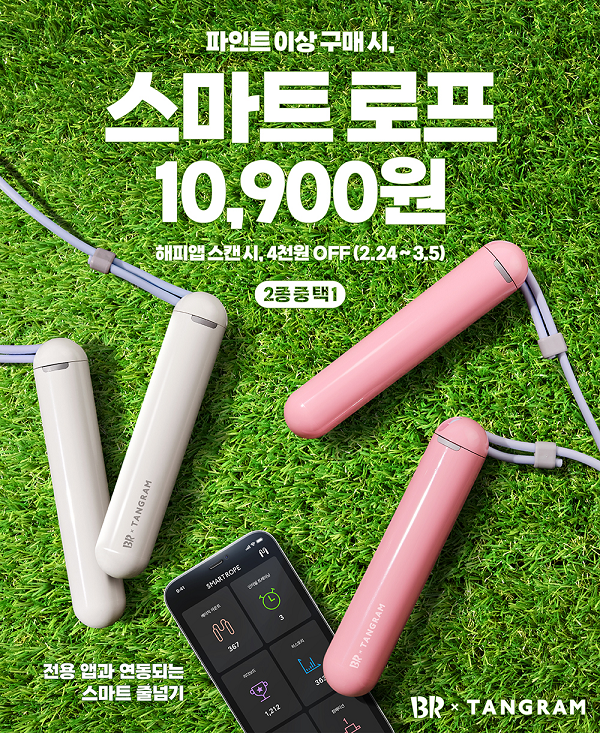 또한, SNS에 해시태그로 ‘#오운완(오늘 운동 완료)’을 인증하는 소비자들의 최신 라이프 스타일을 고려해 ‘스마트 로프’ 구매 고객을 대상으로 ‘오운완 챌린지’ 프로모션을 3월 5일까지 진행한다. 애플 앱스토어 혹은 구글 플레이 스토어에서 ‘스마트 로프’ 전용 앱을 다운로드한 후, 하루 1,000회 이상 점프를 달성하고 발급받은 시크릿 코드를 해피앱 내 이벤트 페이지에 입력하면 된다. 참여자에게는 ‘싱글레귤러 1+1’ 쿠폰을 증정할 계획이다.