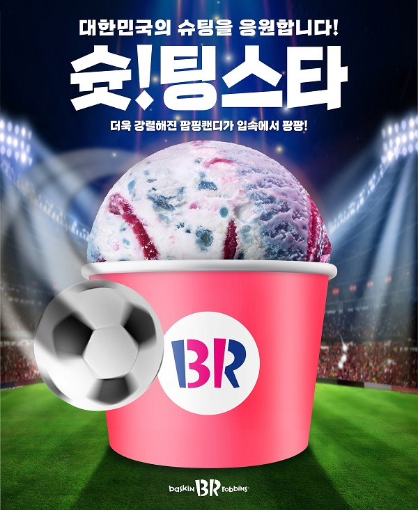 SPC그룹이 운영하는 배스킨라빈스가 대한민국 축구 국가대표팀의 선전을 기원하기 위해 인기 플레이버 ‘슈팅스타’를 업그레이드한 ‘슛!팅스타’를 한정 판매한다고 25일 밝혔다.