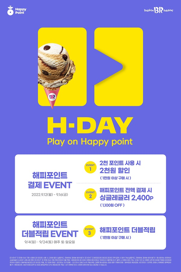 SPC그룹이 운영하는 배스킨라빈스가 해피포인트 회원을 대상으로 풍성한 할인 및 적립 혜택을 제공하는 ‘H-DAY’ 프로모션을 진행한다고 13일 밝혔다.