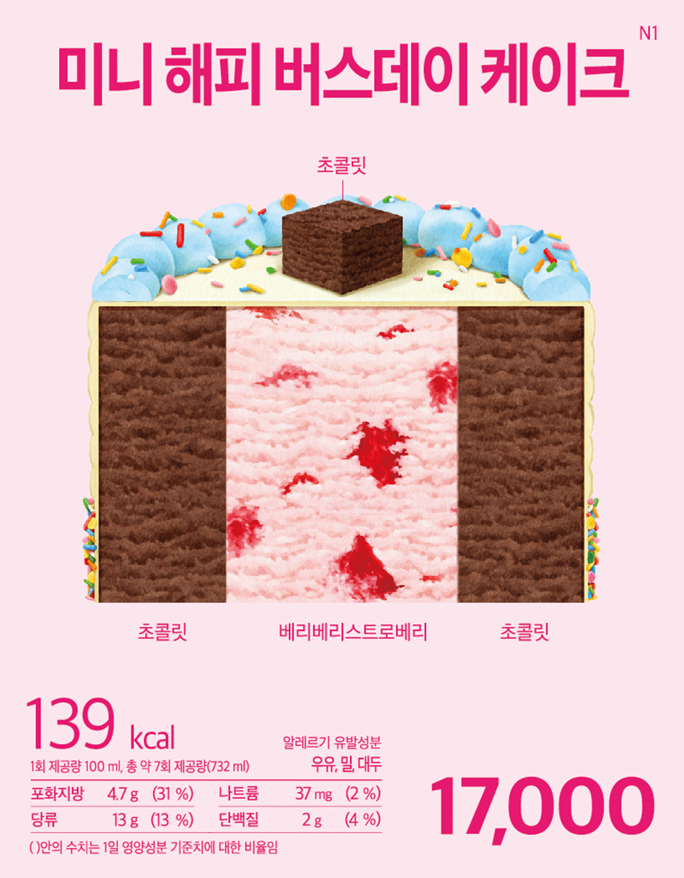 ICECREAM CAKE MINI HAPPY BIRTHDAY CAKE 미니 해피 버스데이 케이크 BR 베스트셀러 해피 버스데이 케이크의 미니 버전! 레트로 감성과 레터링 초콜릿으로 더욱 예쁜 미니 케이크 17,000원 미니 베리 타르트 반짝이는 잔망루피