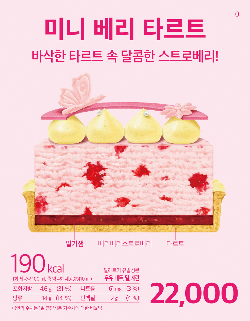 ICECREAM CAKE MINI BERRY TART 미니 베리 타르트 바삭한 타르트 속 달콤한 스트로베리가 가득한 케이크 22,000원 미니 골라먹는 와츄원 미니 해피 버스데이 케이크