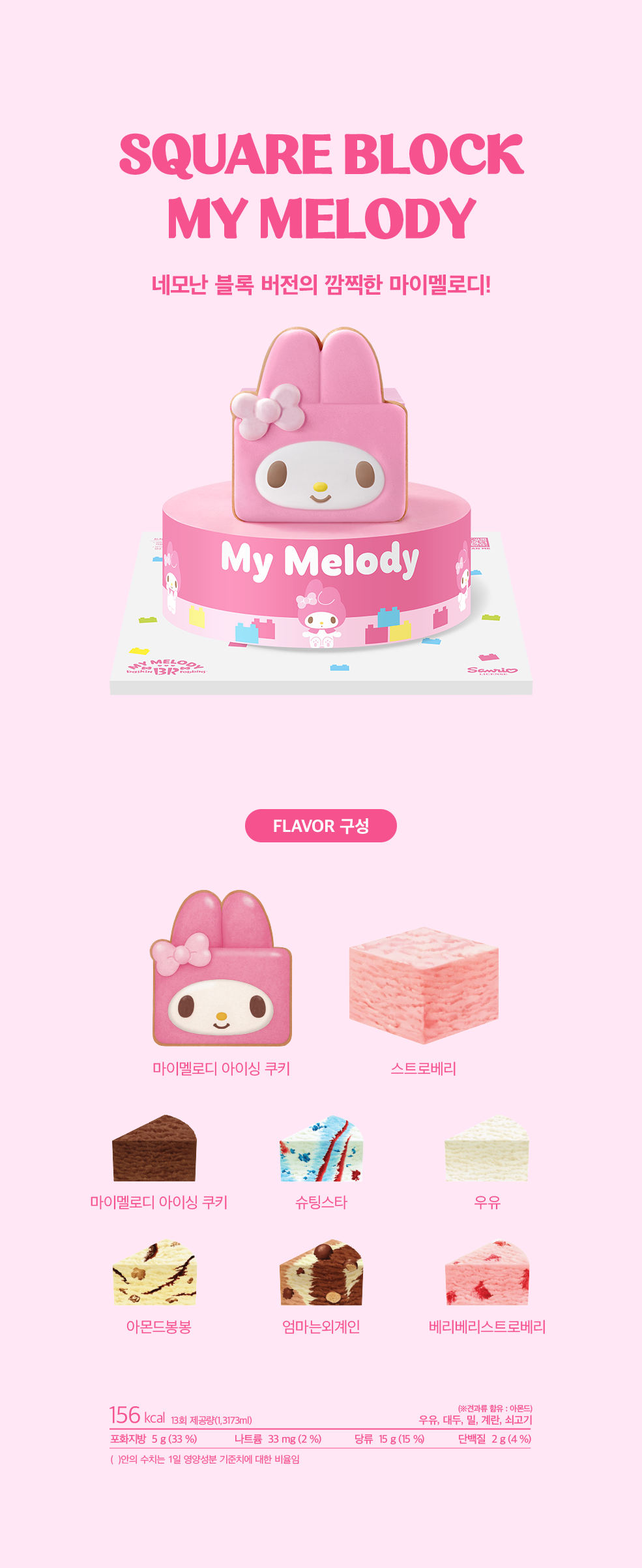 ICECREAM CAKE SQUARE BLOCK MY MELODY 네모 블록 마이멜로디 네모난 블록 버전의 깜찍한 마이멜로디! - 마이멜로디와 더 듬뿍 딸기 (Lessly Edition) 민트 초콜릿 칩 미니 케이크