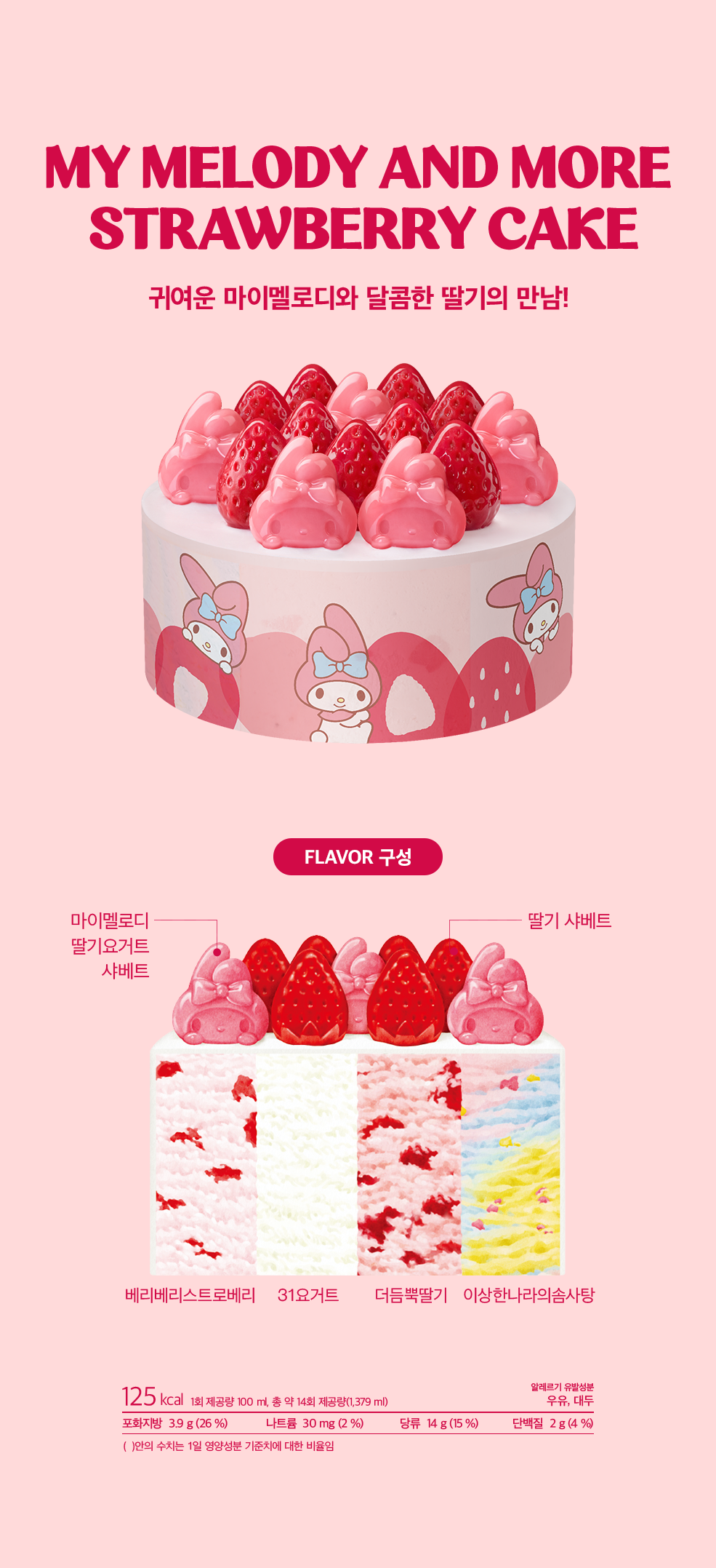 ICECREAM CAKE MY MELODY AND MORE STRAWBERRY CAKE 마이멜로디와 더 듬뿍 딸기 귀여운 마이멜로디와 달콤한 딸기의 만남! 34,000원 핑크 베리 말차 네모 블록 마이멜로디