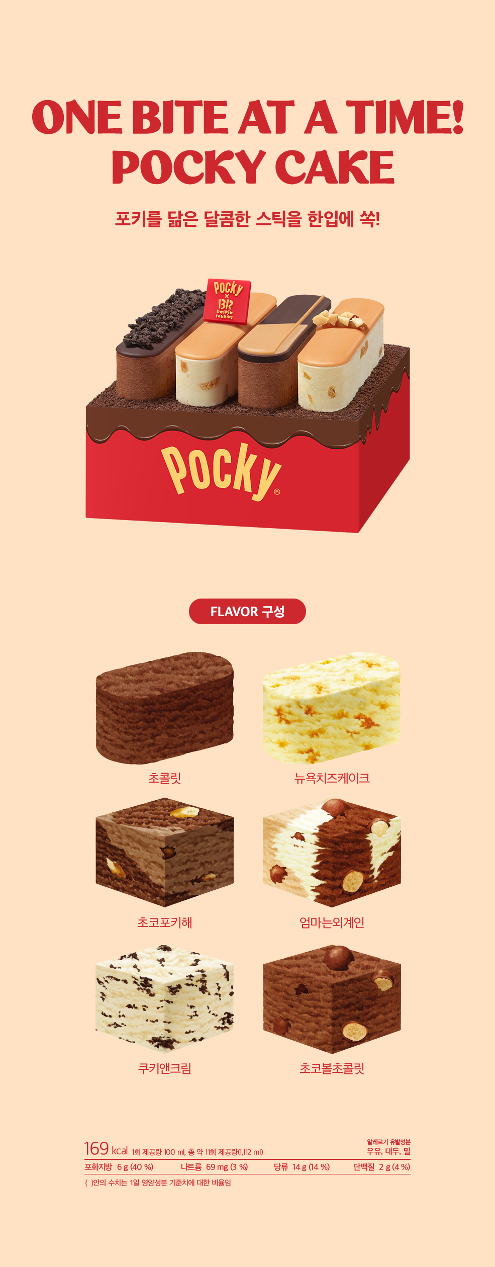 ICECREAM CAKE ONE BITE AT A TIME! POCKY CAKE 한입 쏙! 포키 케이크 포키를 닮은 달콤한 스틱을 한입에 쏙! 31,000원 진정한 크림치즈 레드벨벳 달콤 가득 포키 케이크