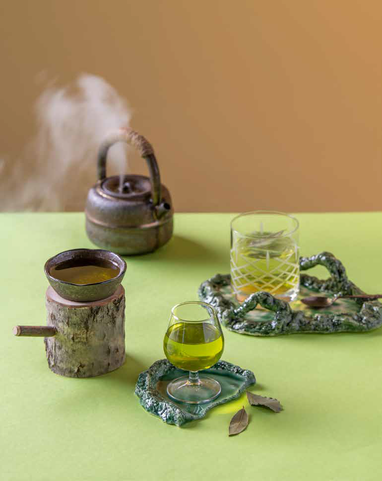 + 잔 받침에 녹차와 드라이아이스를 담아두면 녹차 향기를 함께 즐길 수 있다.