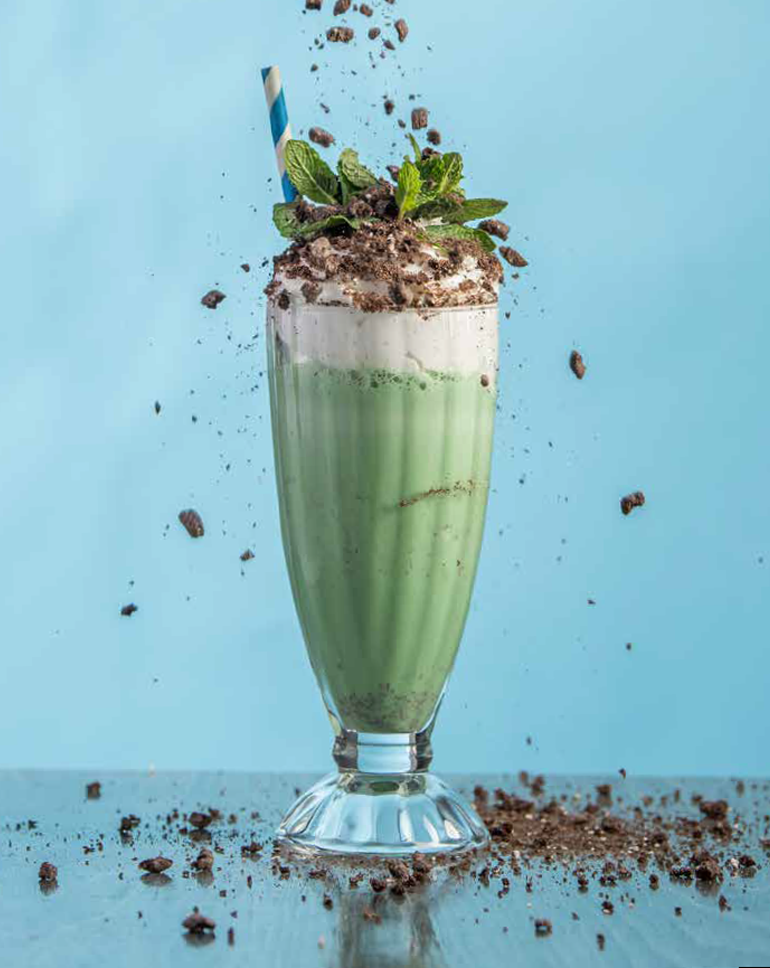 1. 1민트 초콜릿 칩 아이스크린, 흑맥주, 설탕 시럽을 블렌더에 섞어준다.