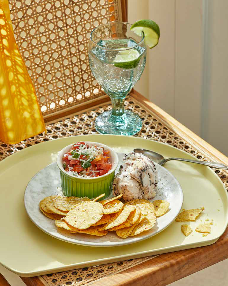 4. 4 넓적한 볼에 살사를 담고 한쪽에 아이스크림을 한스쿱 뜬 후 나초를 곁들여 냅니다