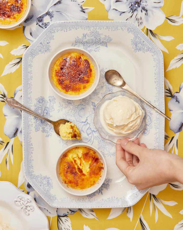 달걀 노른자와 바닐라 아이스크림을 녹이고 그 위에 설탕을 뿌려 토치로 구워주면 완성!